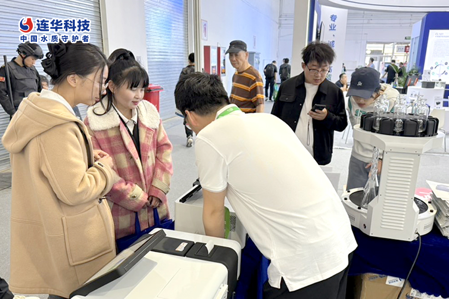 展位上,連華科技的紫外可見分光光度計LH-S700、便攜式多參數水質測定儀LH-E200等明星產品整齊陳列。技術人員現場操作設備,清晰展示儀器在精度、穩定性及操作便捷性上的優勢。面對觀眾的技術咨詢,工作人員耐心解答,從儀器原理到應用場景,專業術語運用自如,展現出深厚的技術功底。