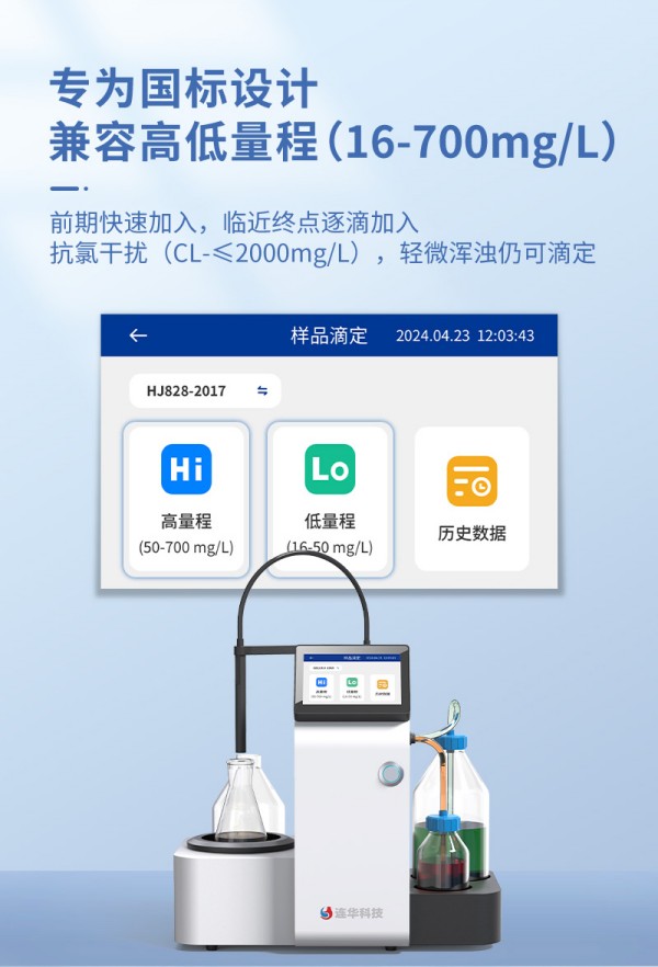 LH-JA100采用光學顏色識別原理,專為CODcr國標法優化設計,可自動完成滴定全流程: