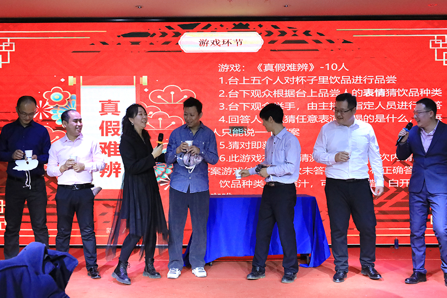 除了精彩的節目表演,互動游戲和幸運抽獎環節也穿插在節目表演中,讓大家更加投入到年會的氣氛中。員工們踴躍地參與游戲互動,歡笑聲此起彼伏。幸運抽獎更是讓現場氣氛一度達到高潮,幸運兒們喜氣洋洋地拿著獎品合影留念。節目表演結束后,晚宴環節正式開始,菜品豐富多樣,色香味俱佳,大家品嘗著美食,交杯換盞,暢談著工作和生活,笑容洋溢在每個人的臉上。