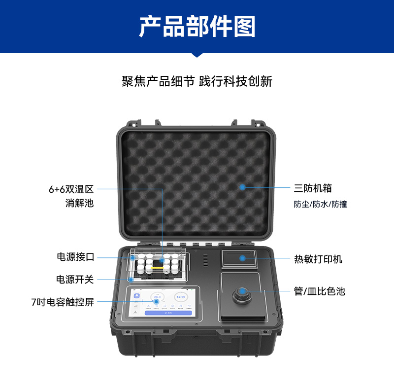 光源的持久耐用也是LH-C600的一大亮點(diǎn)。內(nèi)置8個(gè)可見光波長LED光源,壽命長、更穩(wěn)定且故障率更低,大幅降低了使用和維護(hù)成本。同時(shí),戶外檢測便攜性也是該儀器的一大優(yōu)勢。采用主機(jī)箱+配件箱的形式,耗材、配件完備,戶外檢測方便快捷。大容量鋰電池更是確保了儀器在戶外無電源條件下連續(xù)工作8小時(shí)以上的能力,讓水質(zhì)檢測不再受地點(diǎn)和時(shí)間限制。